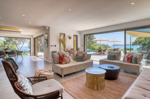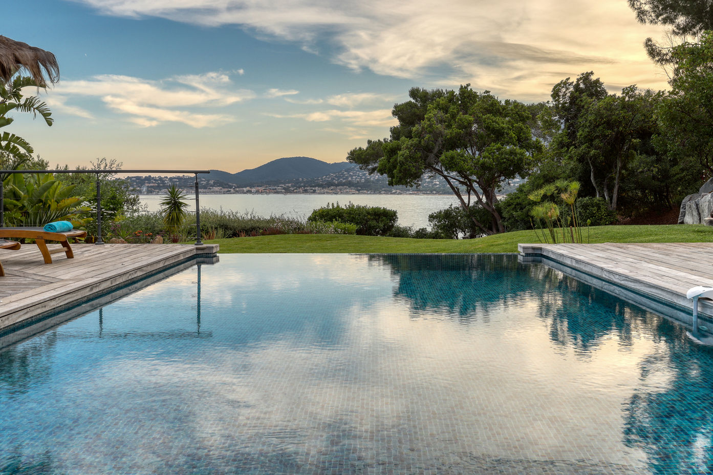 Avec une vue imprenable sur la baie de Cavalaire et les Îles de Port-Cros, puis ornée de son jardin méditerranéen de 4600m², cet écrin de tranquillité est le lieu rêvé pour des vacances sur la Côte d'Azur.